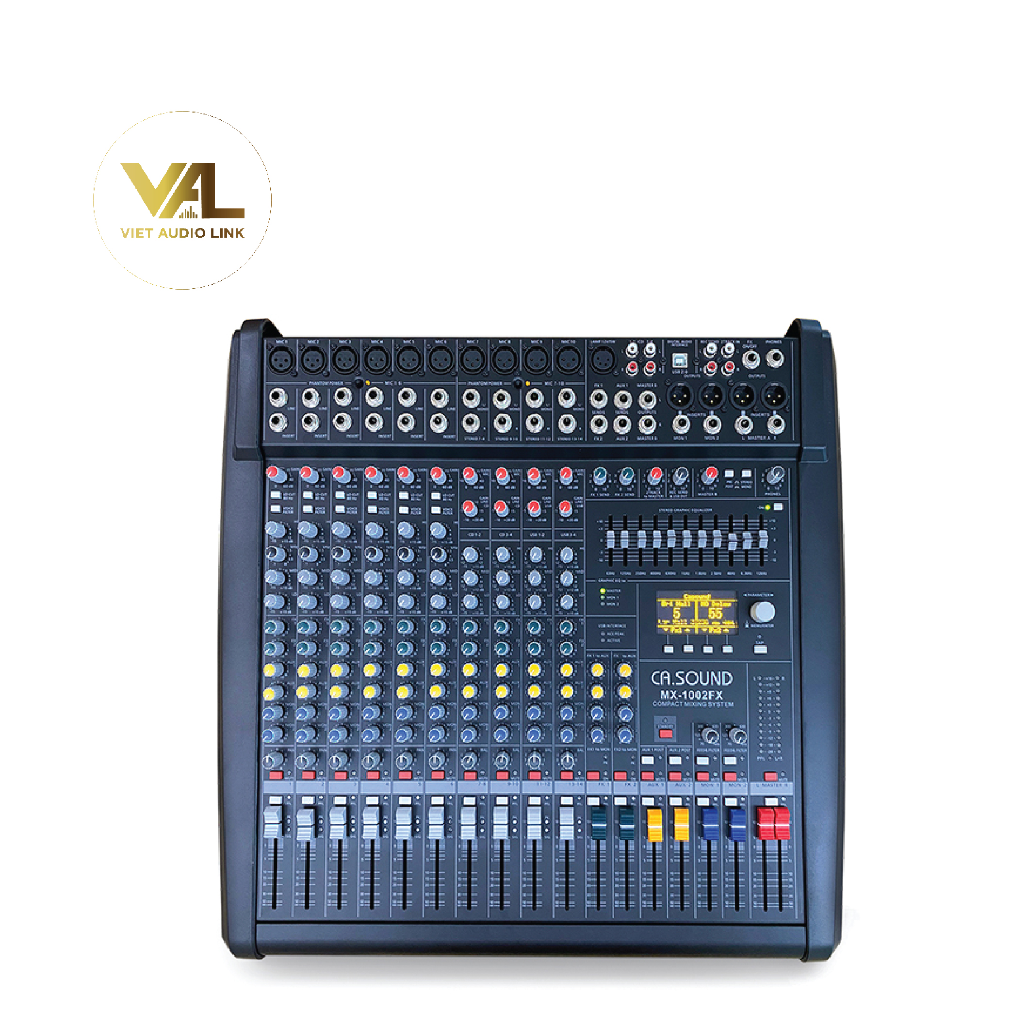 Mixer CAsound M-1002FX là bàn trộn âm thanh chuyên nghiệp tích hợp nhiều tính năng, phù hợp cho karaoke, phòng họp, phòng thu nhỏ và sự kiện nhỏ.